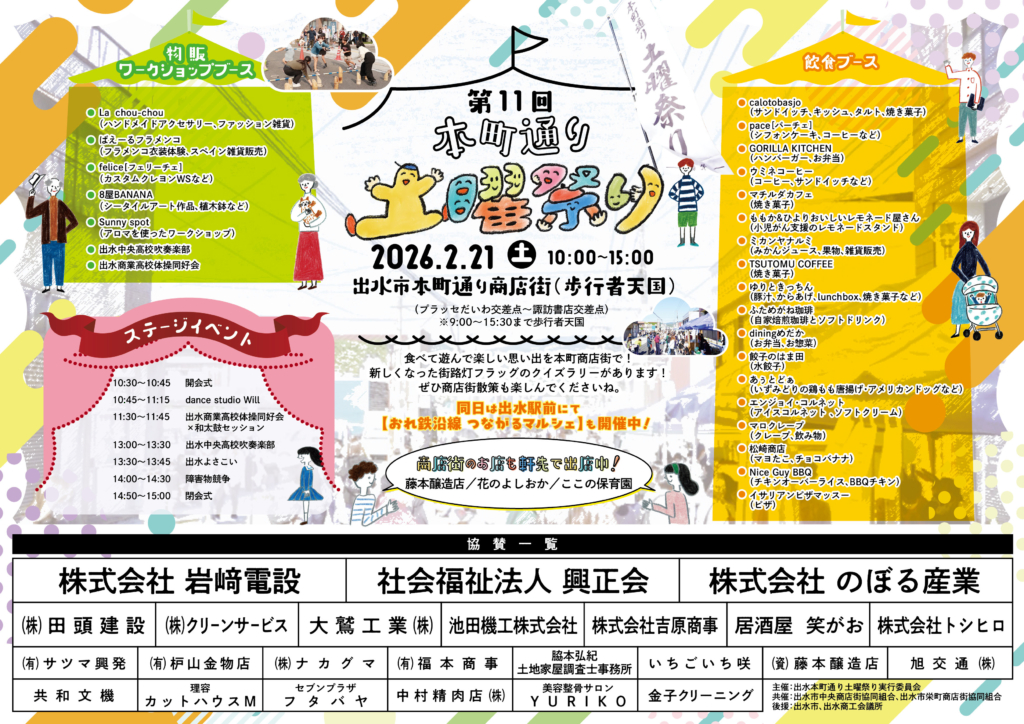 年に一度、出水の本町通り商店街を歩行者天国にして開催される【本町通り土曜祭り】が今年も開催されます!